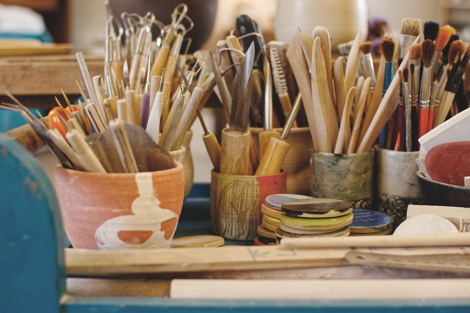 - techniques diverses à choix (modelage/sculpture, estampage, colombins, kurinuki-technique japonaise qui consiste à évider un bloc d’argile…) qui permettent la réalisation de tasses, vases, saladiers, sculptures figuratives ou abstraites, totem, ….